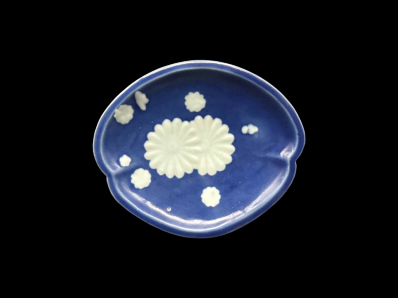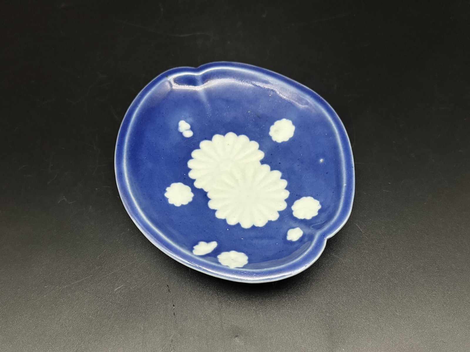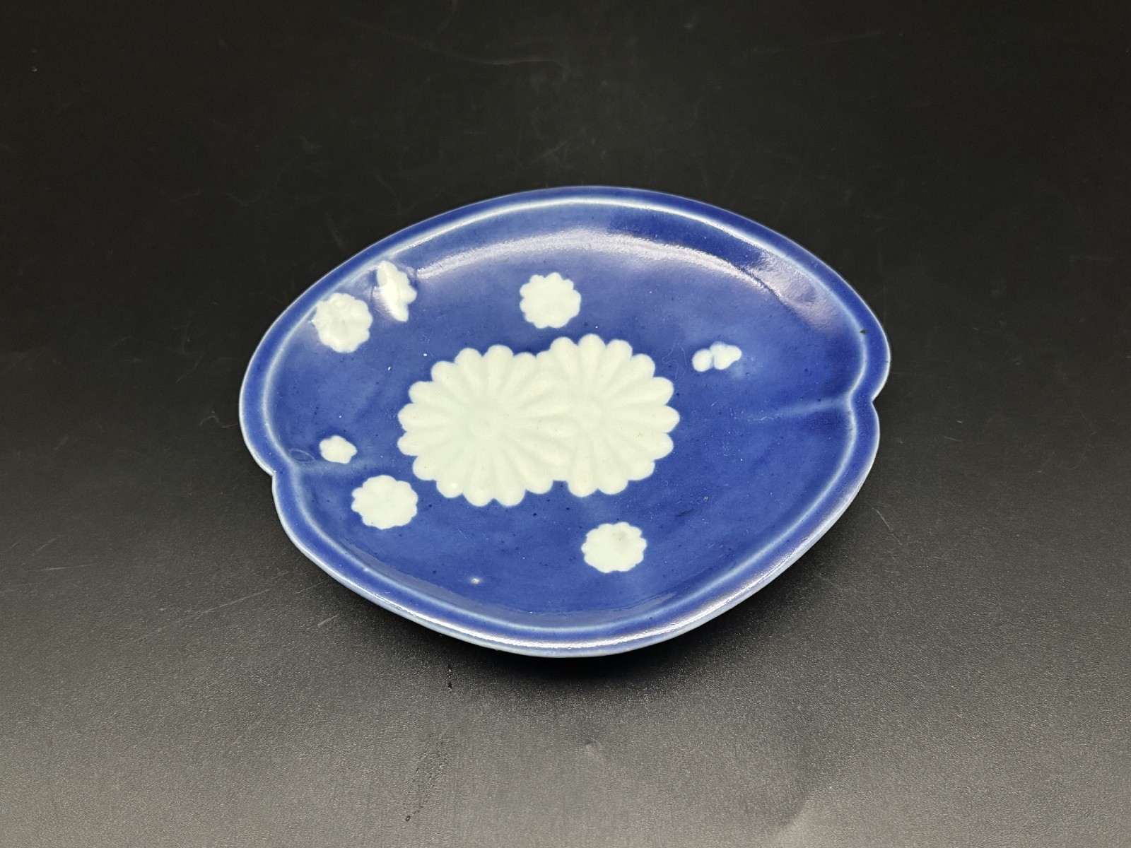 古伊万里 瑠璃釉白磁 菊文変形皿