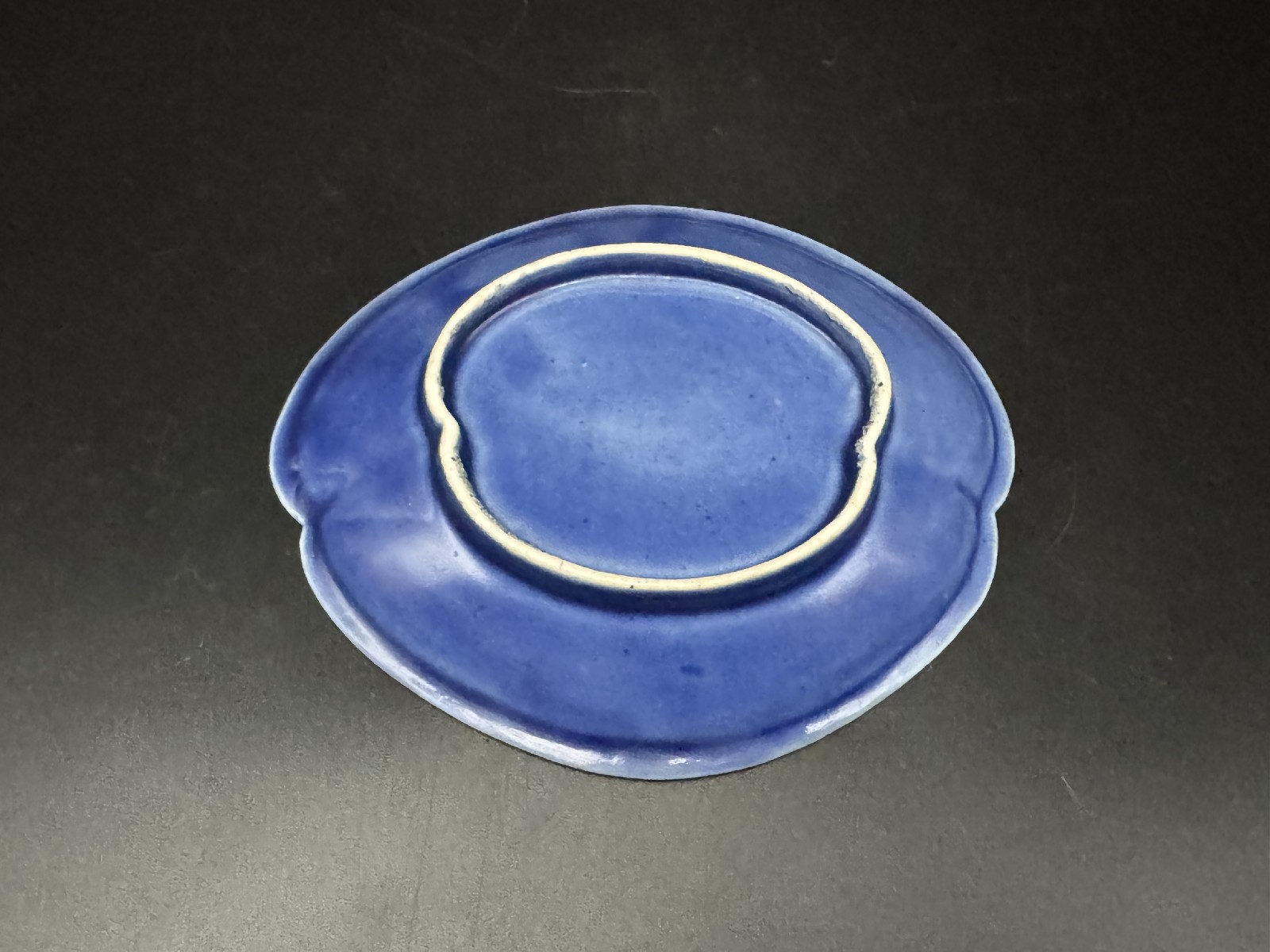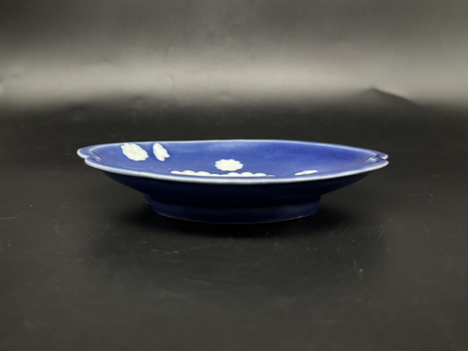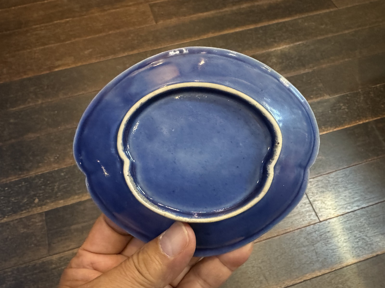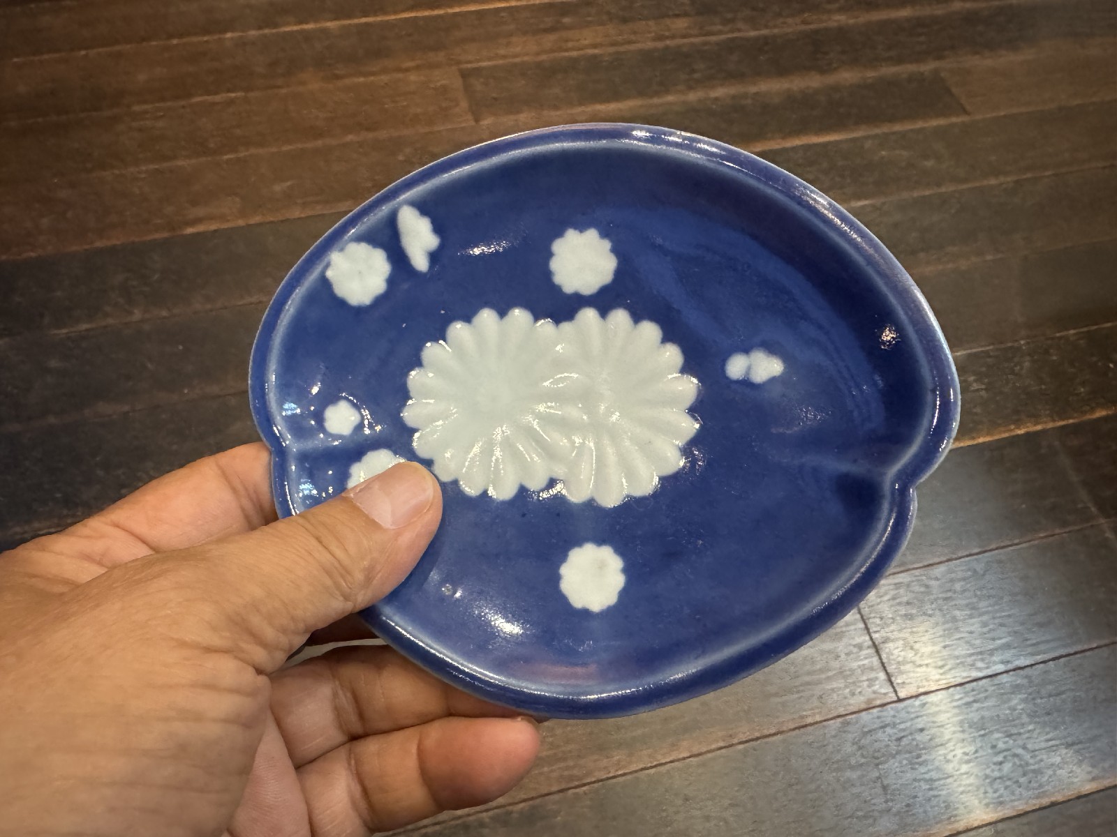 古伊万里 瑠璃釉白磁 菊文変形皿