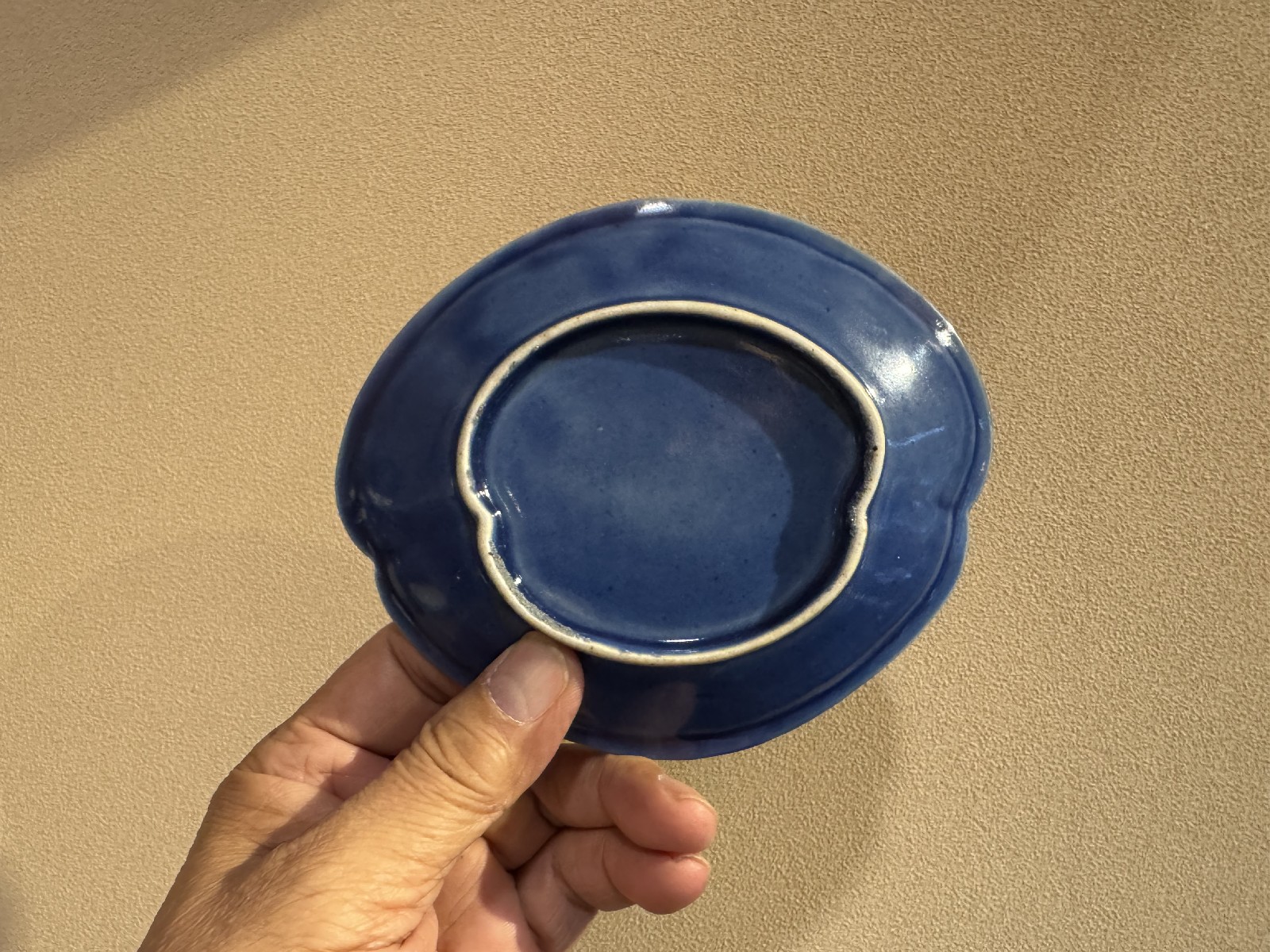 ご売約 古伊万里 瑠璃釉白磁 菊文変形皿