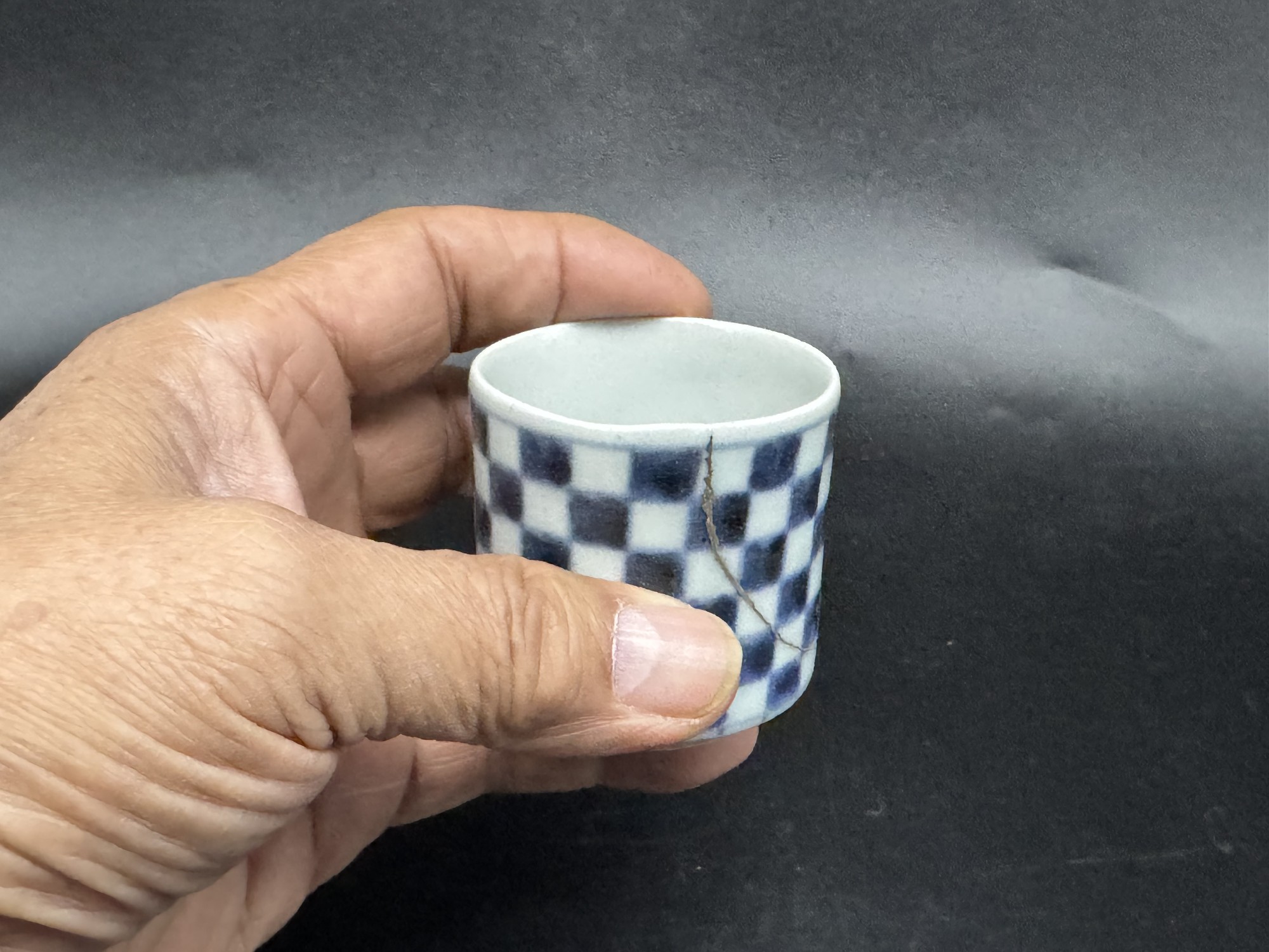 古伊万里 市松文のぞき猪口