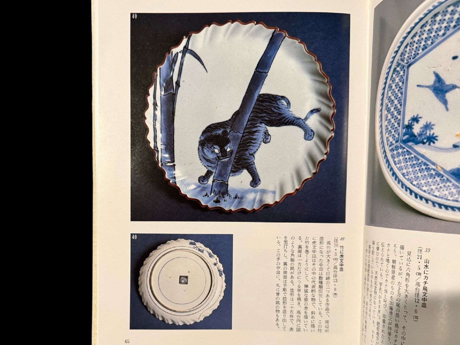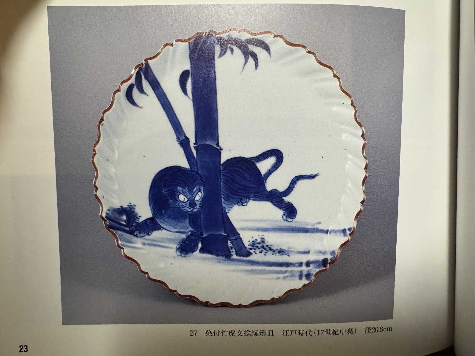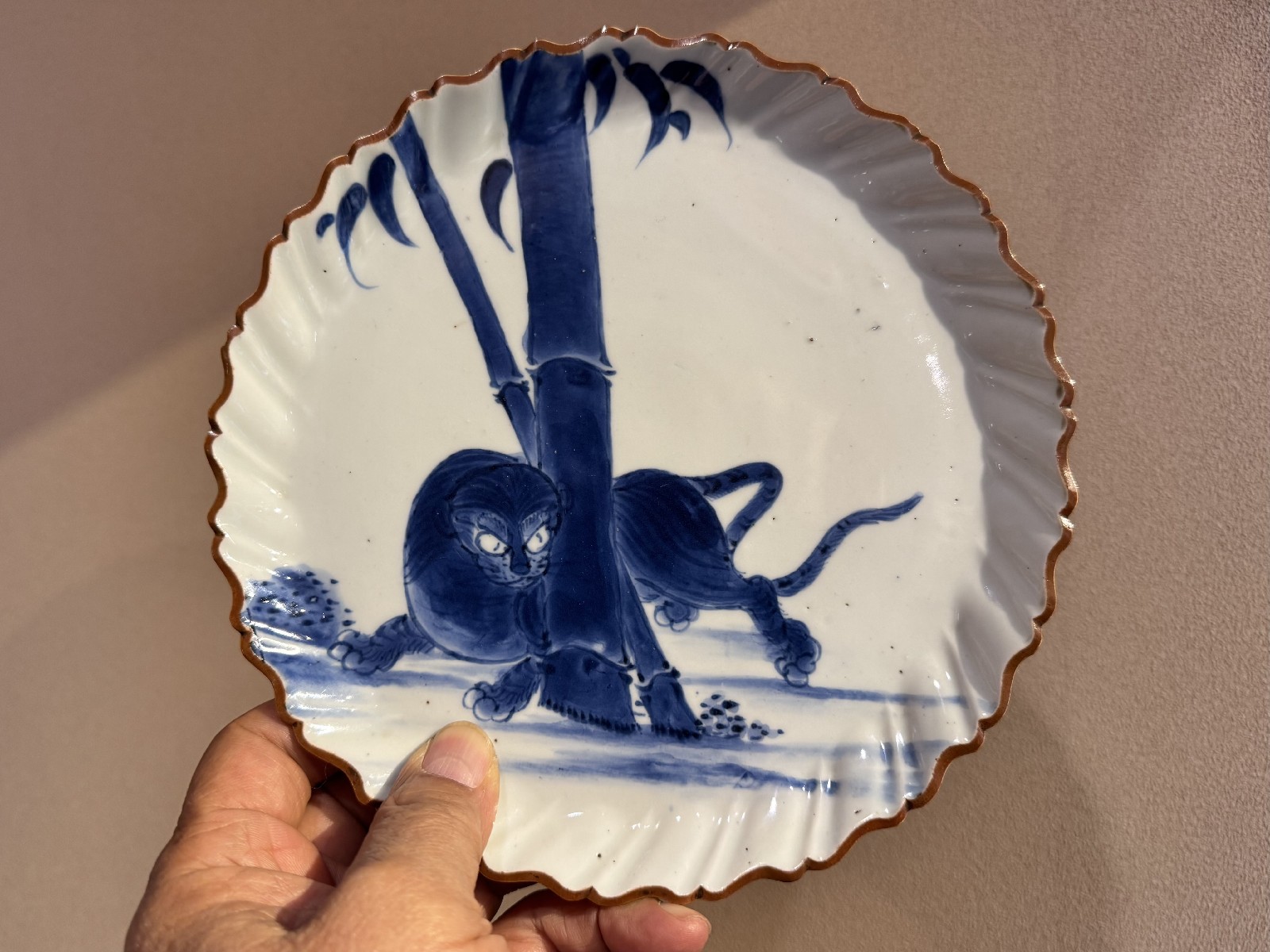 藍九谷 竹虎文捻輪花中皿