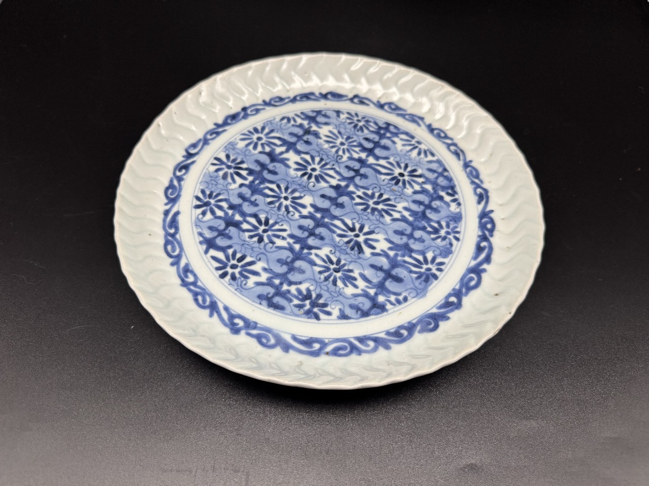 「Y氏のコレクション」藍九谷 地文捻輪花中皿
