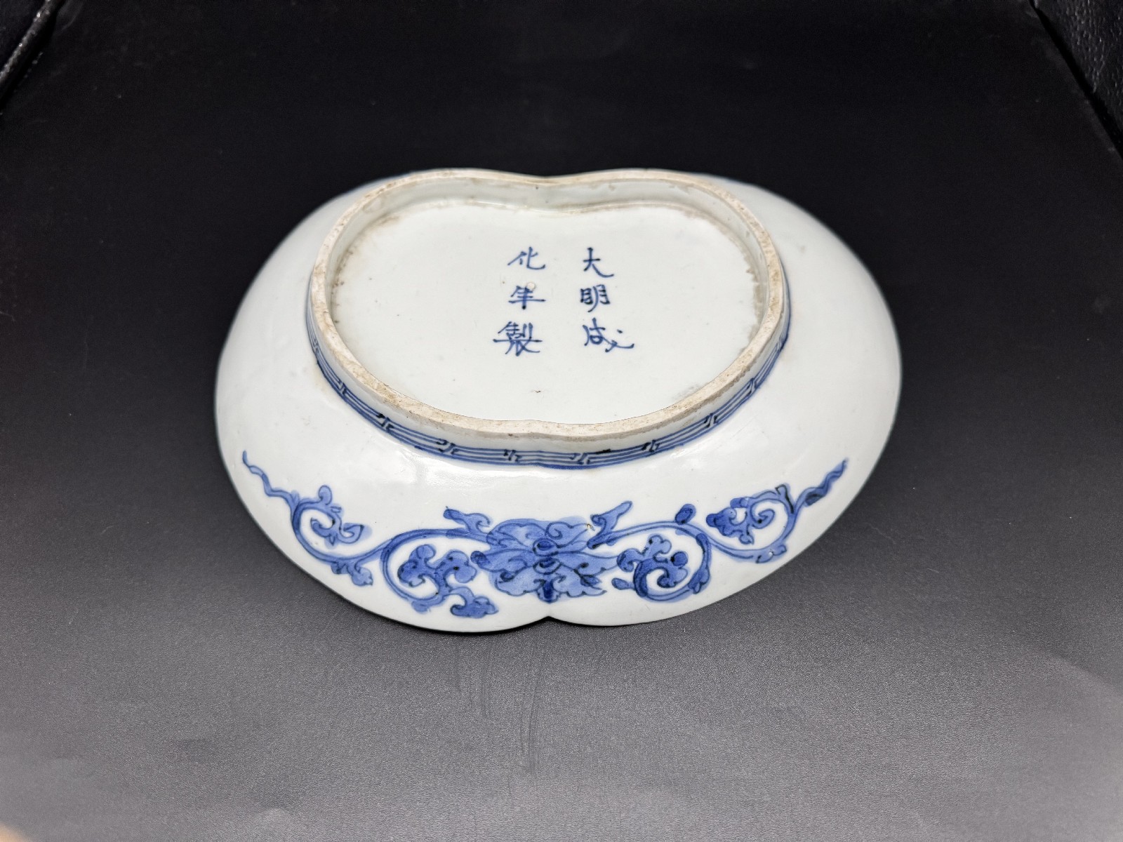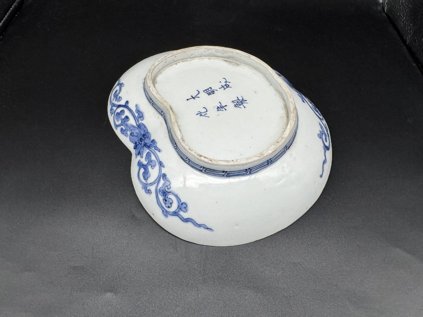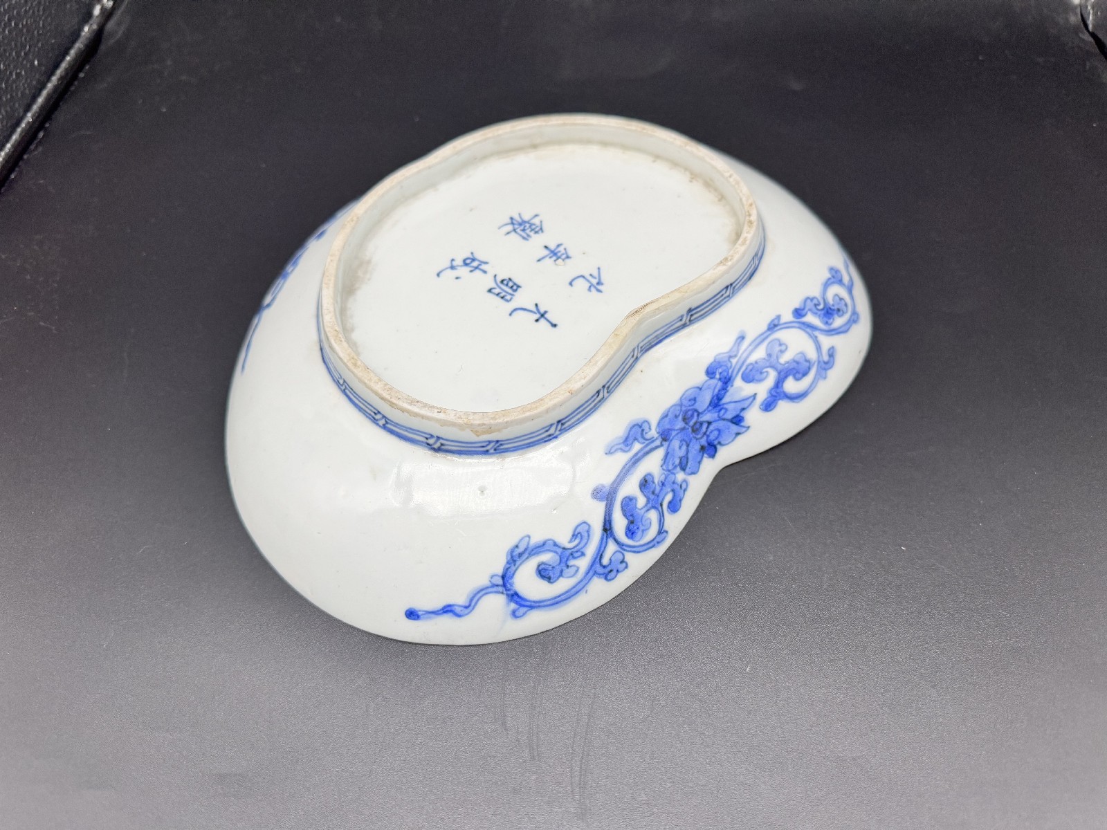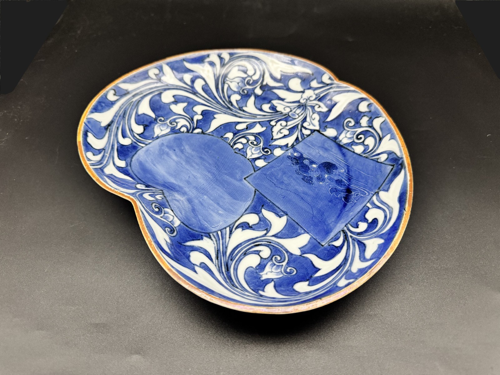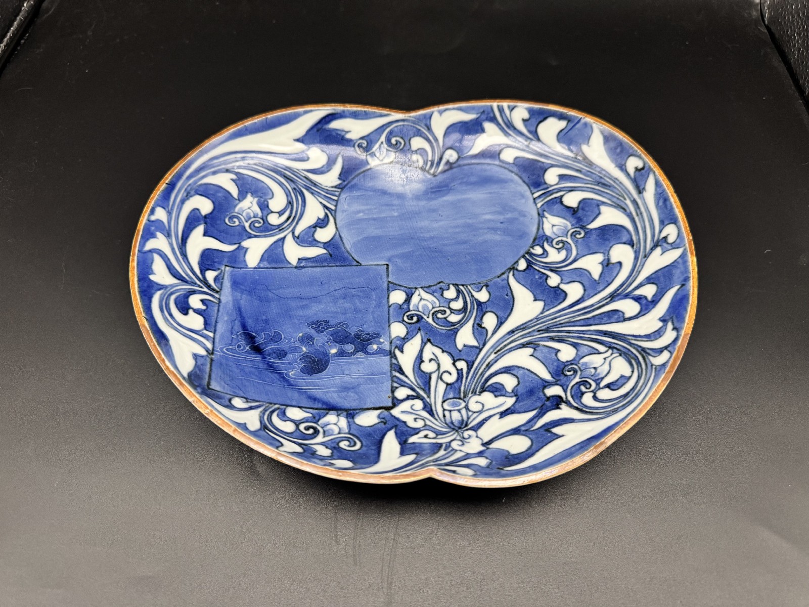 藍九谷 唐草鴛鴦文変形皿