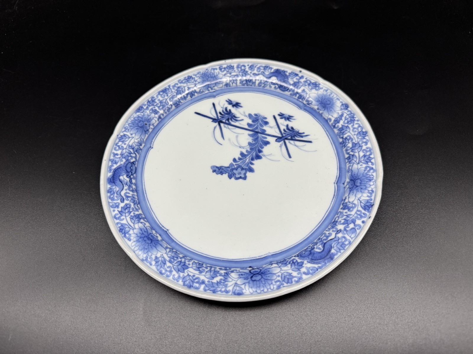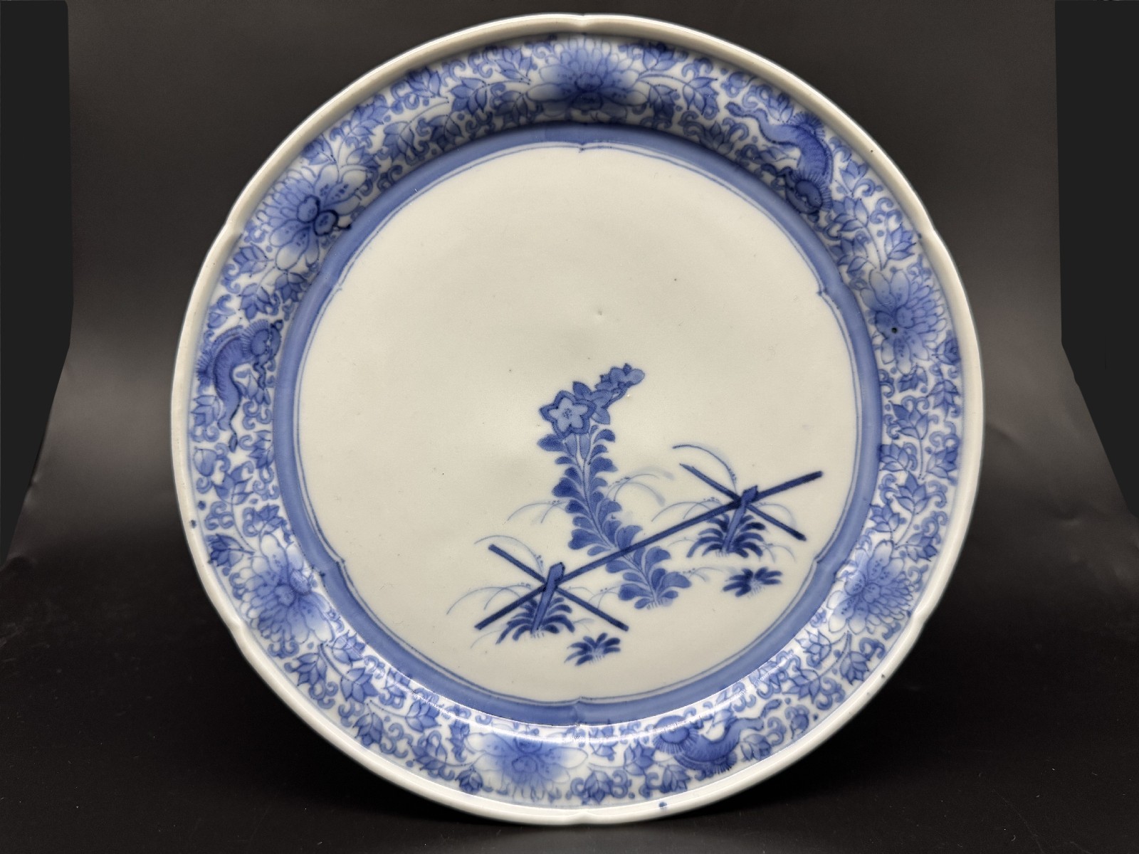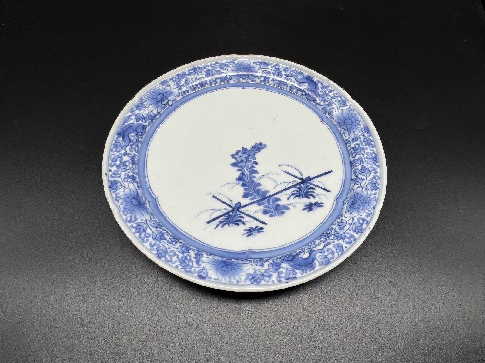 藍柿右衛門 竹垣桔梗文中皿
