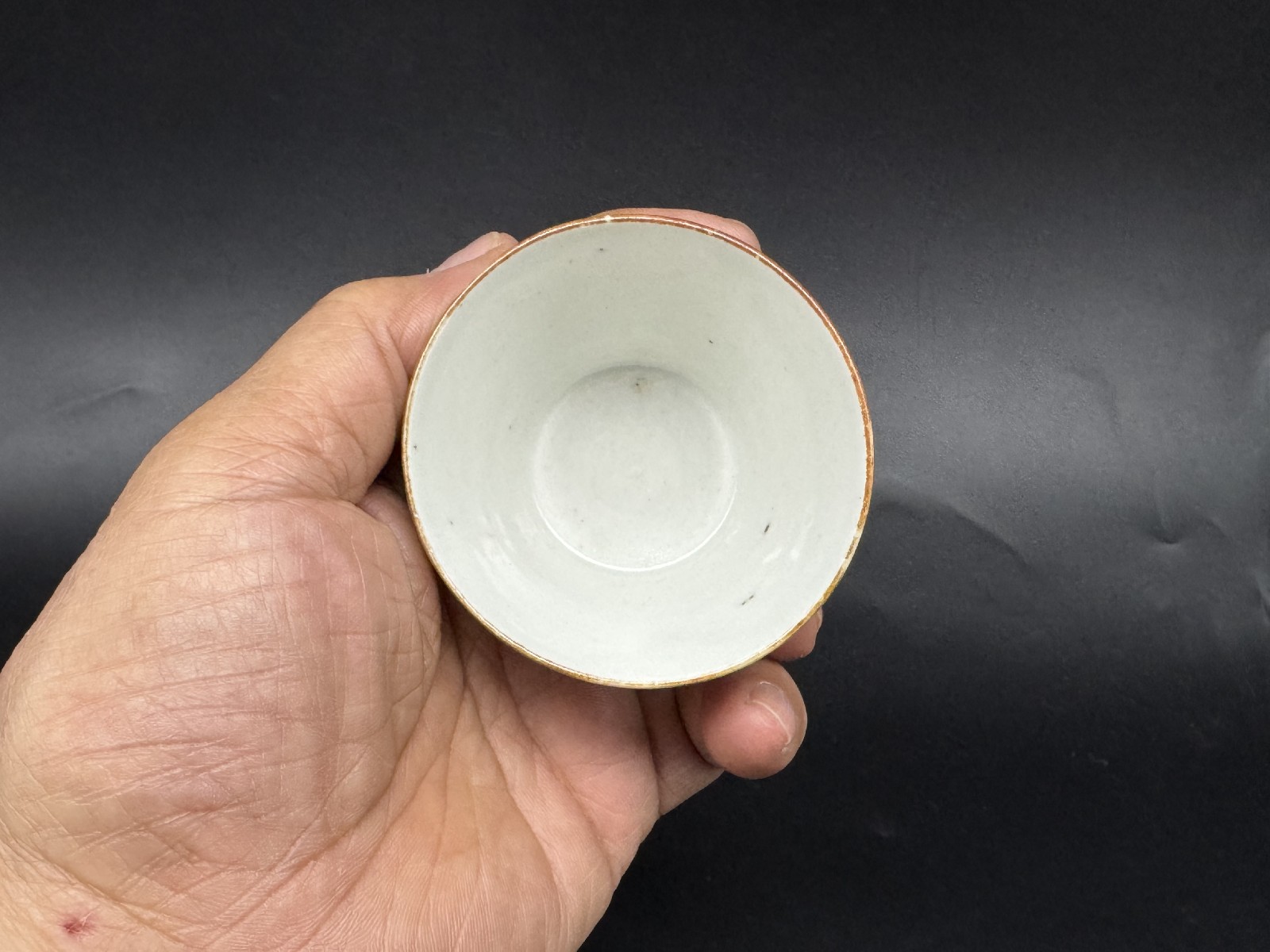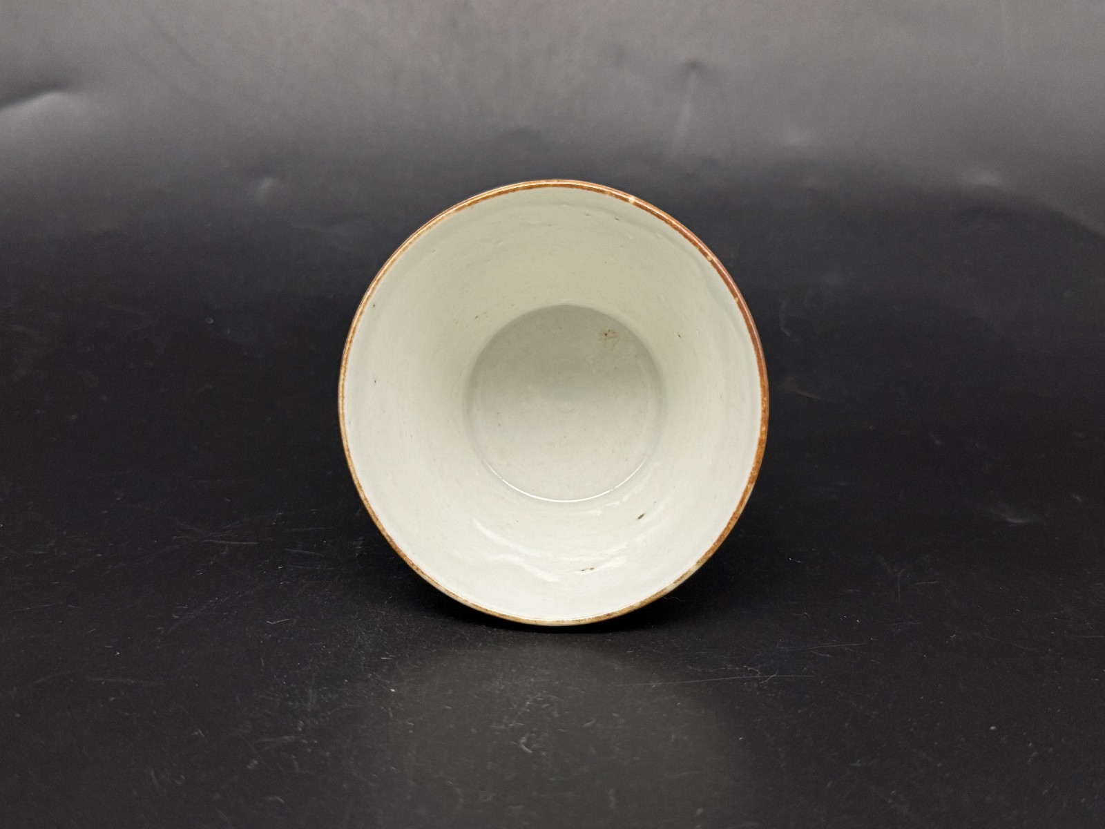 口縁の銹が所々薄くなって白いです。