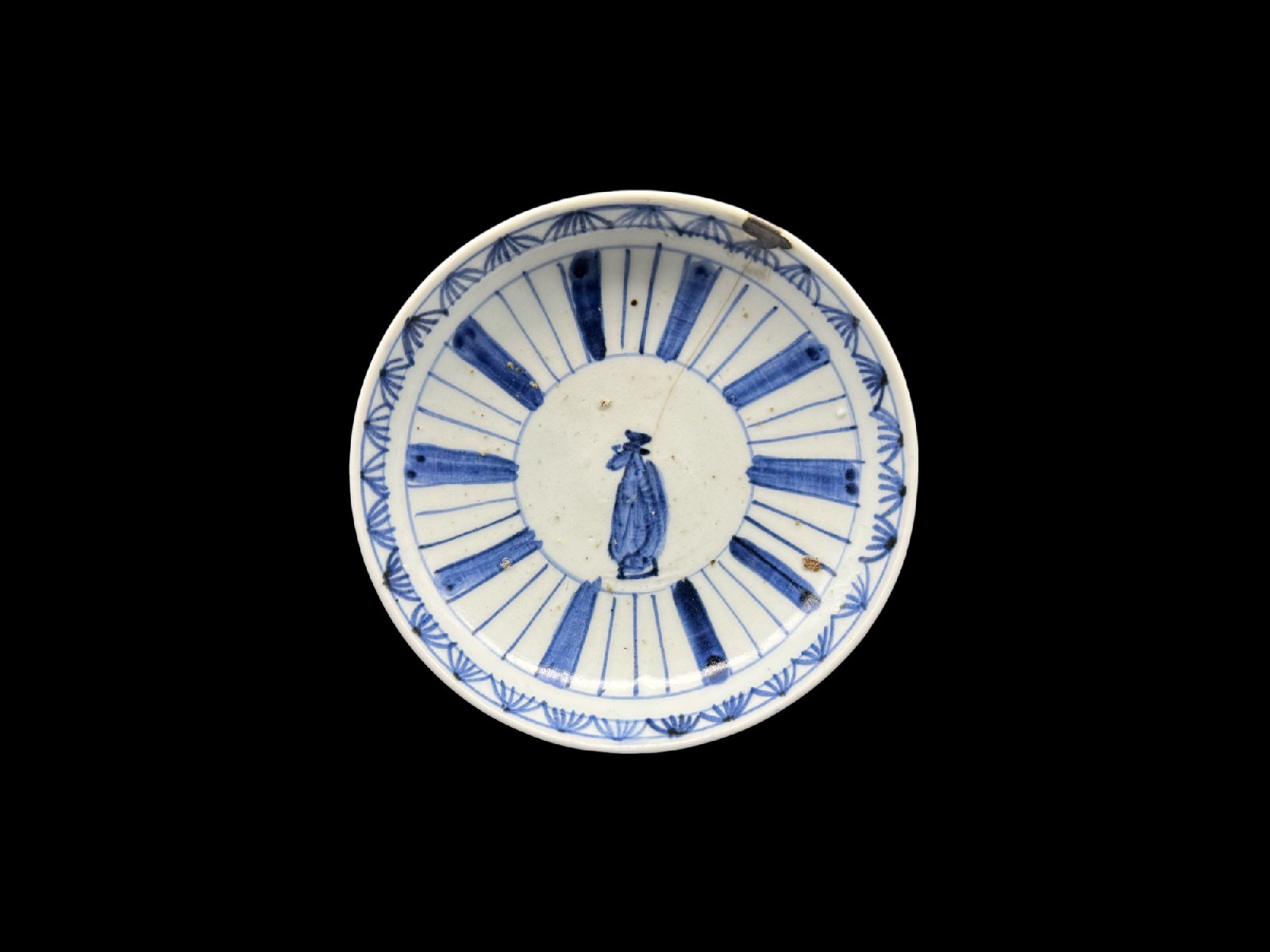 ご売約 初期伊万里 吹墨 鷺文皿(発掘品)