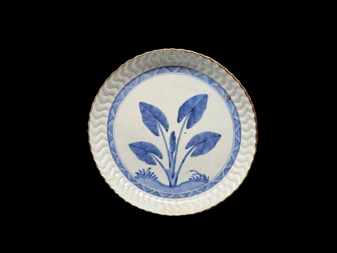 藍九谷芋葉文捻縁中皿
