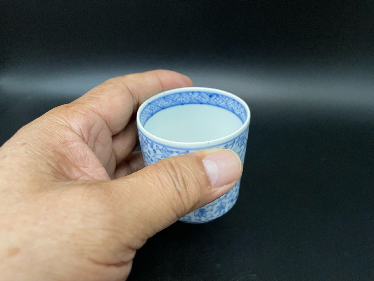 古伊万里染付 唐草文のぞき猪口