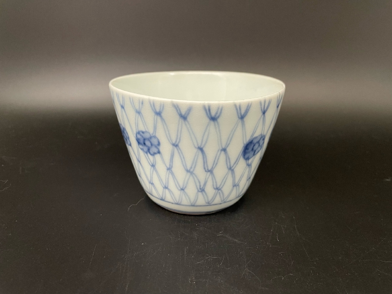 ご売約 4)古伊万里 網目桜花文蕎麦猪口