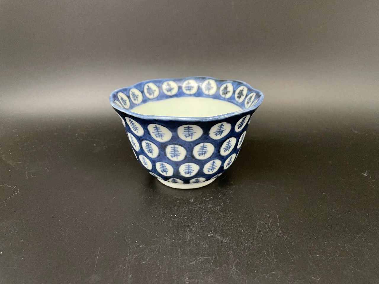 寿字を16文字3段、4段目14文字、62文字並んでいます。おめでたい向付、縁起の好い器でアテを盛って好いお酒を飲んで何事もうまく行きます
