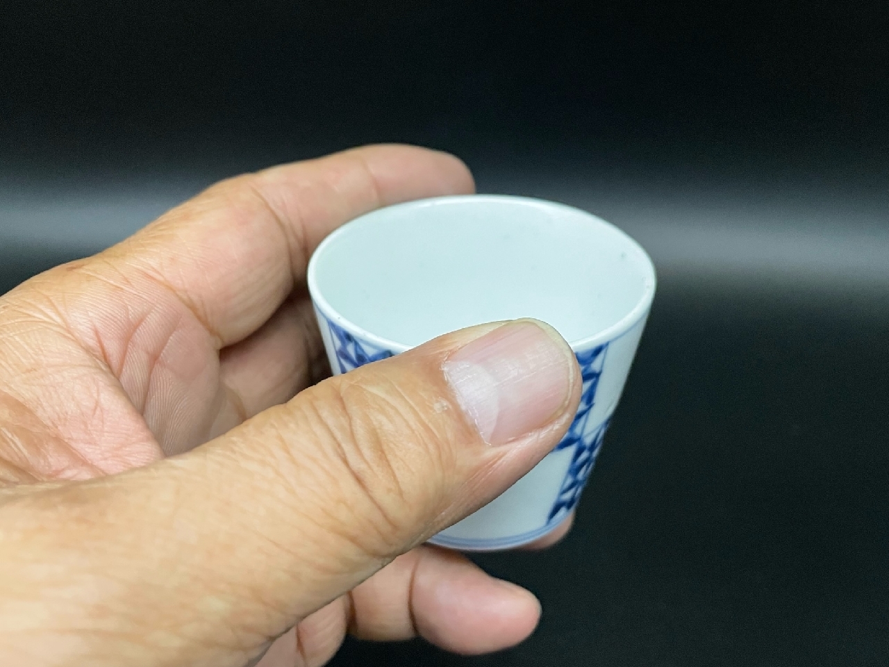 ご売約 23)古伊万里 市松鱗文蕎麦猪口