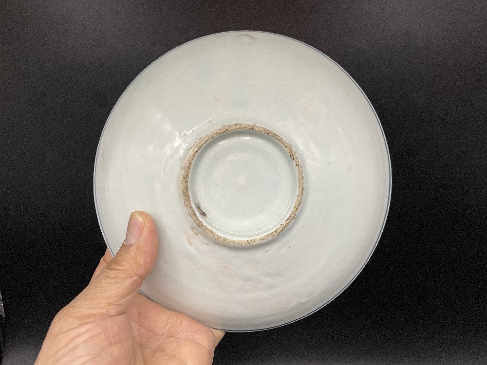 縁にニュウとしたものが多いのはいわゆる貫入(ジカン)も含まれた数で、指で弾いても高い良い音がします。見てすぐに確認できますがそれらを補って余る魅力的なお皿ですよ