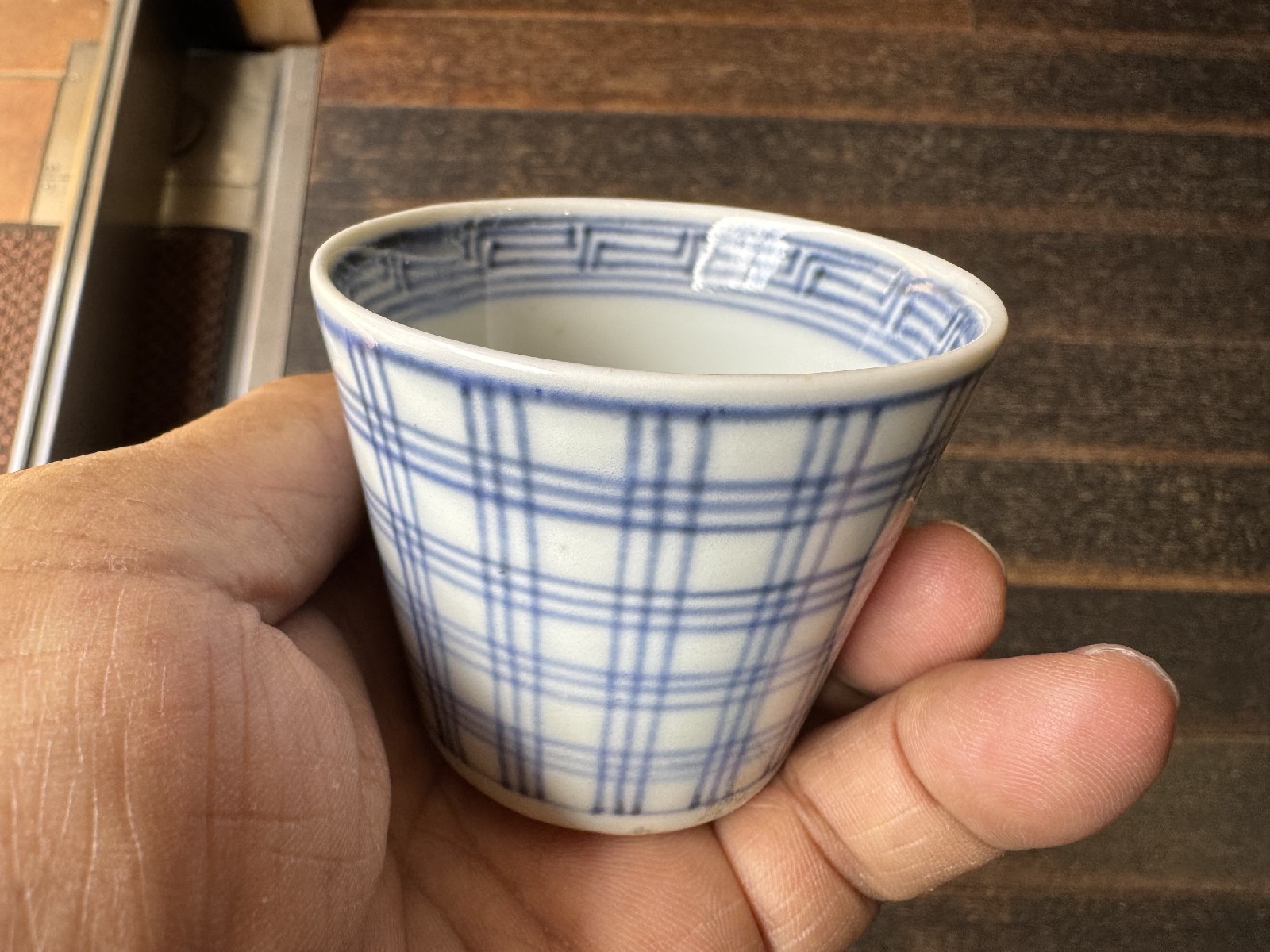 「応援企画」古伊万里 蝙蝠格子文そば猪口