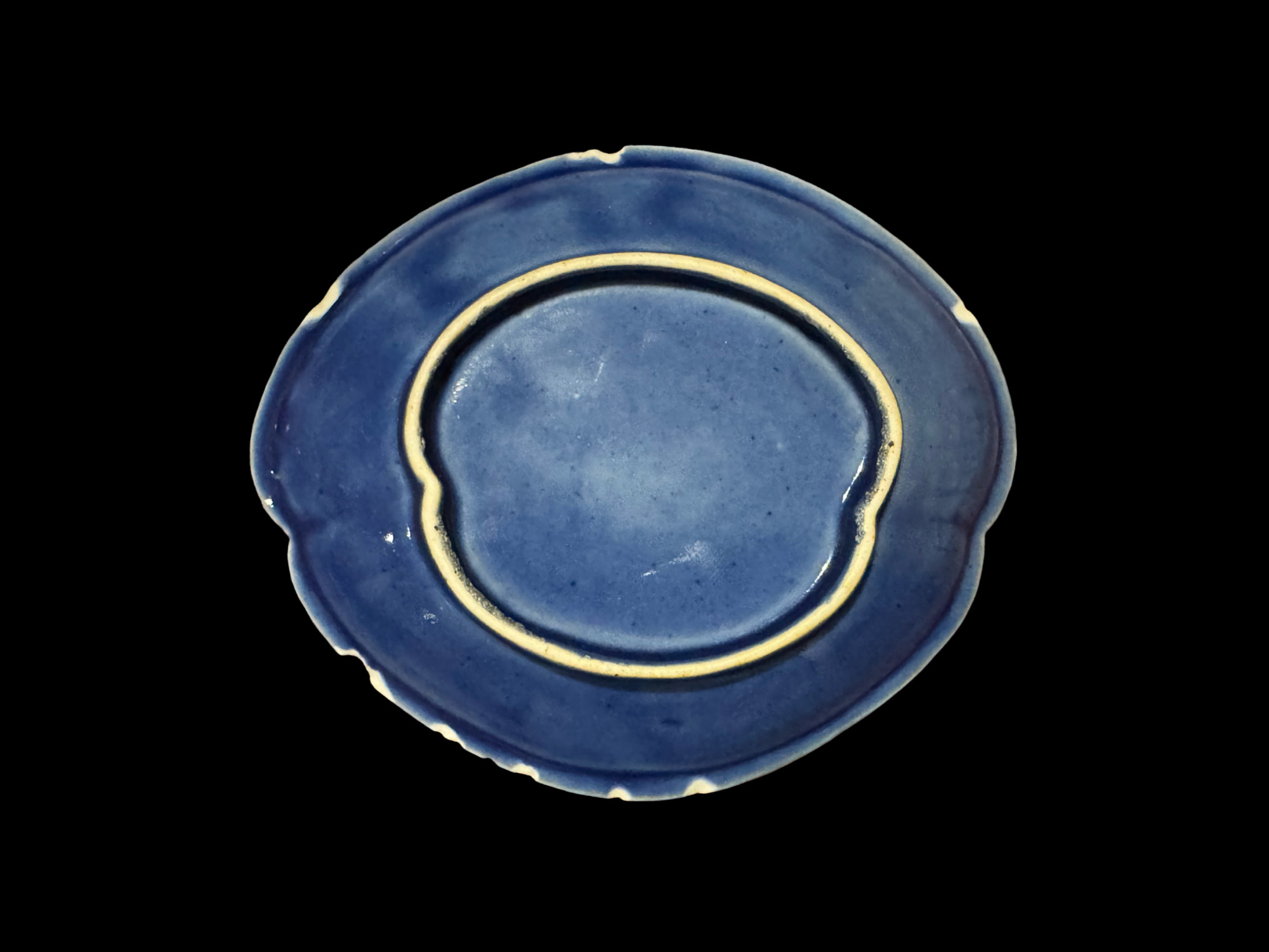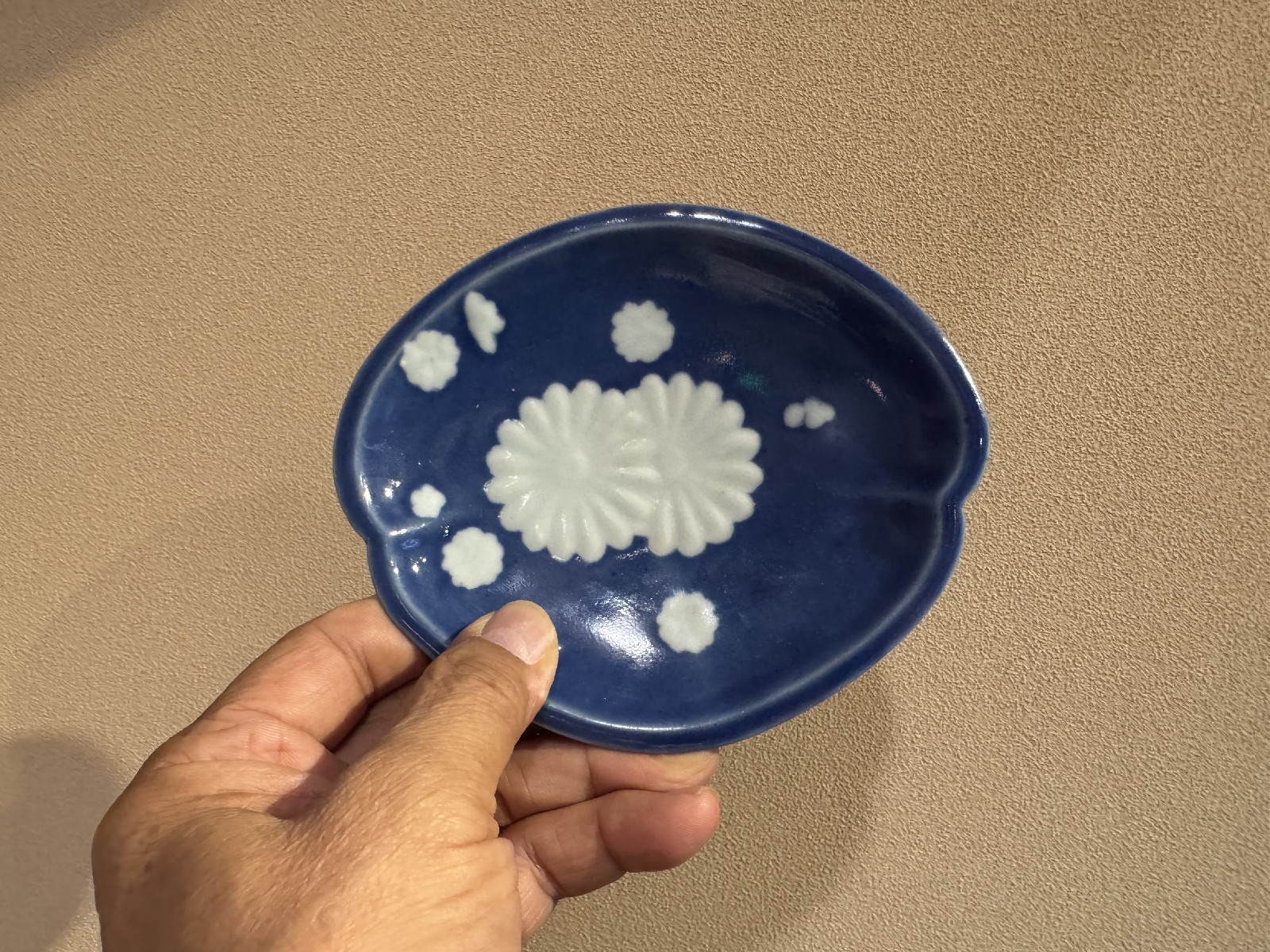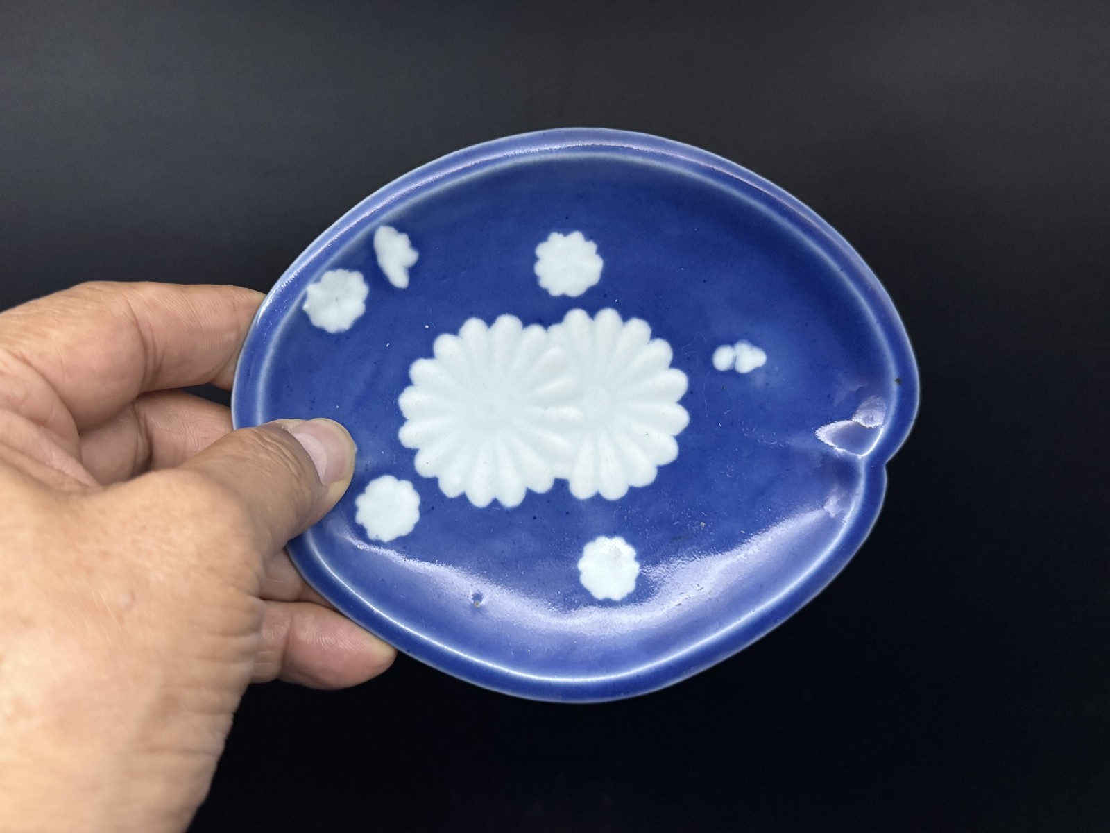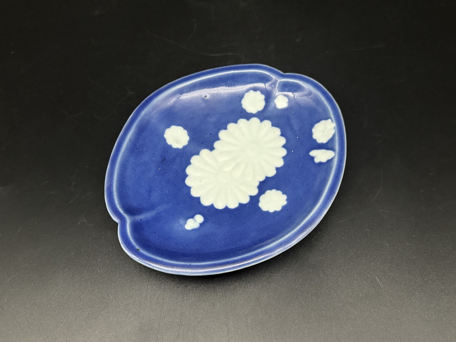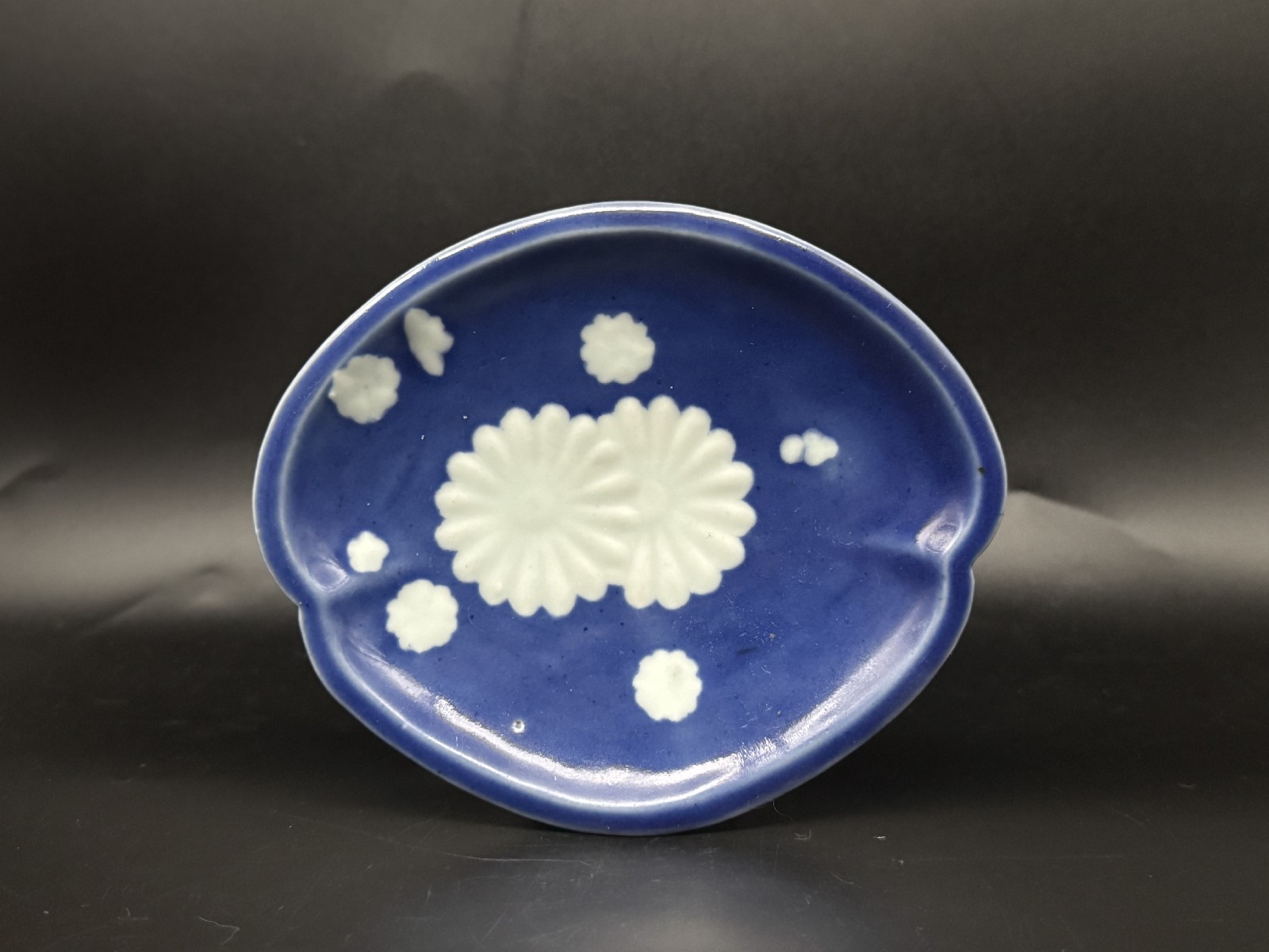 古伊万里 瑠璃釉白磁 菊文変形皿
