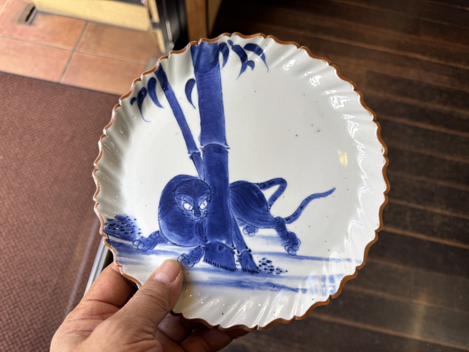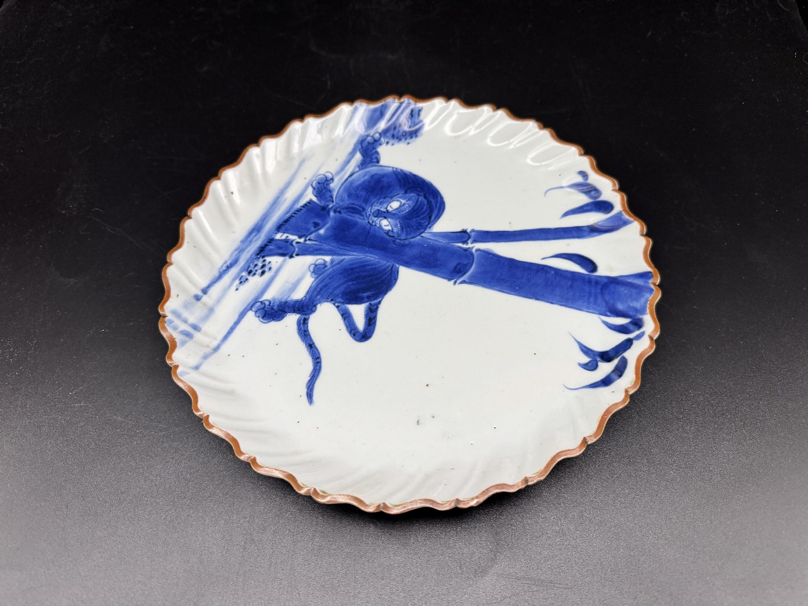 ご売約 藍九谷 竹虎文捻輪花中皿