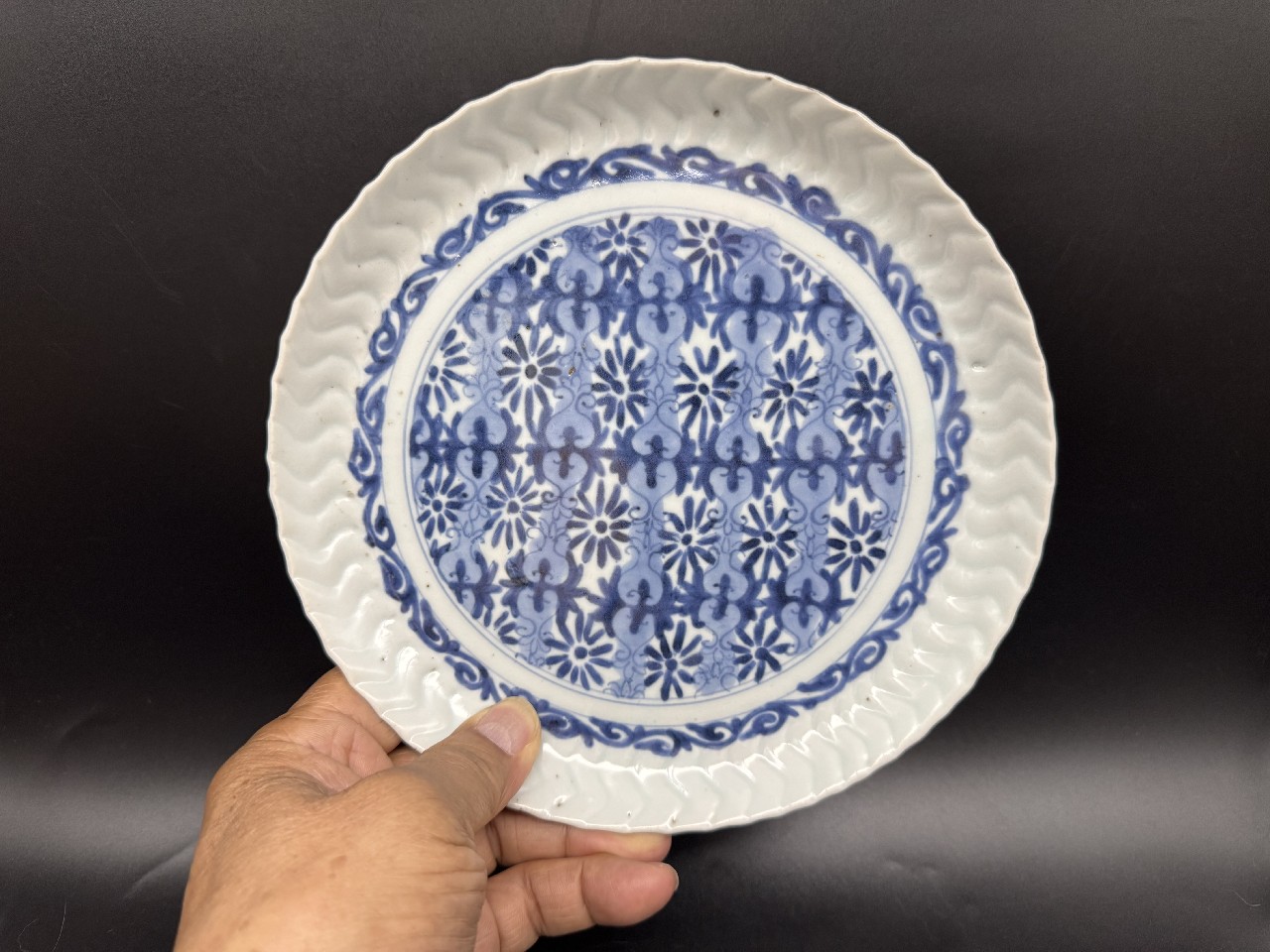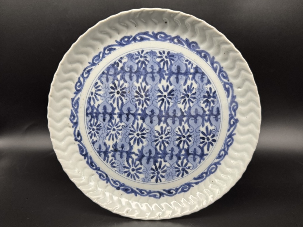 「Y氏のコレクション」藍九谷 地文捻輪花中皿