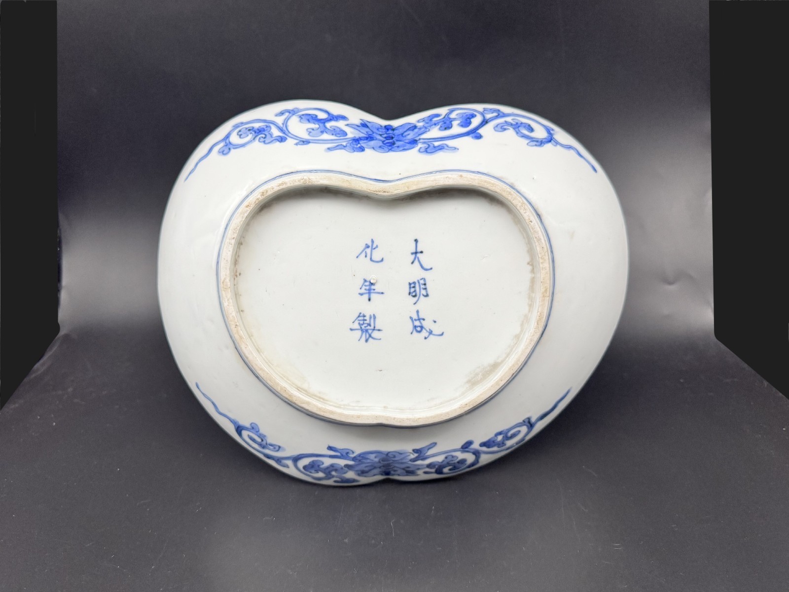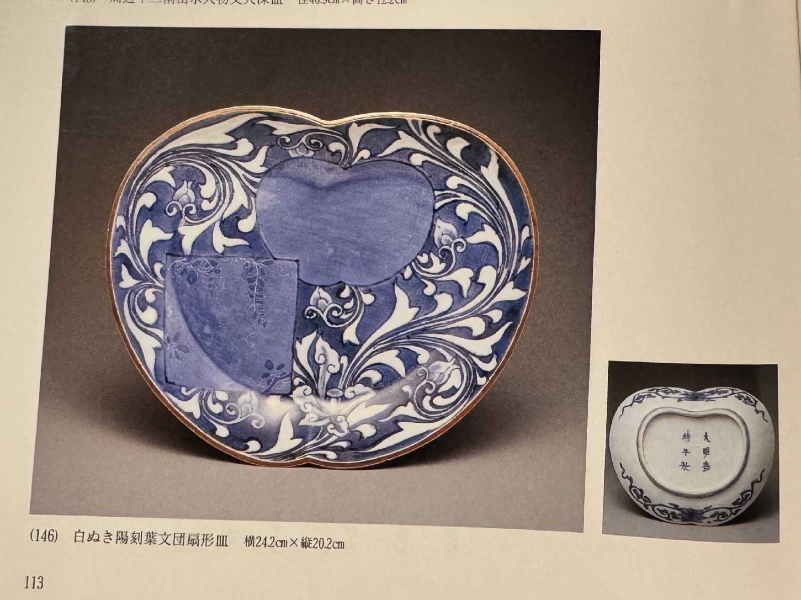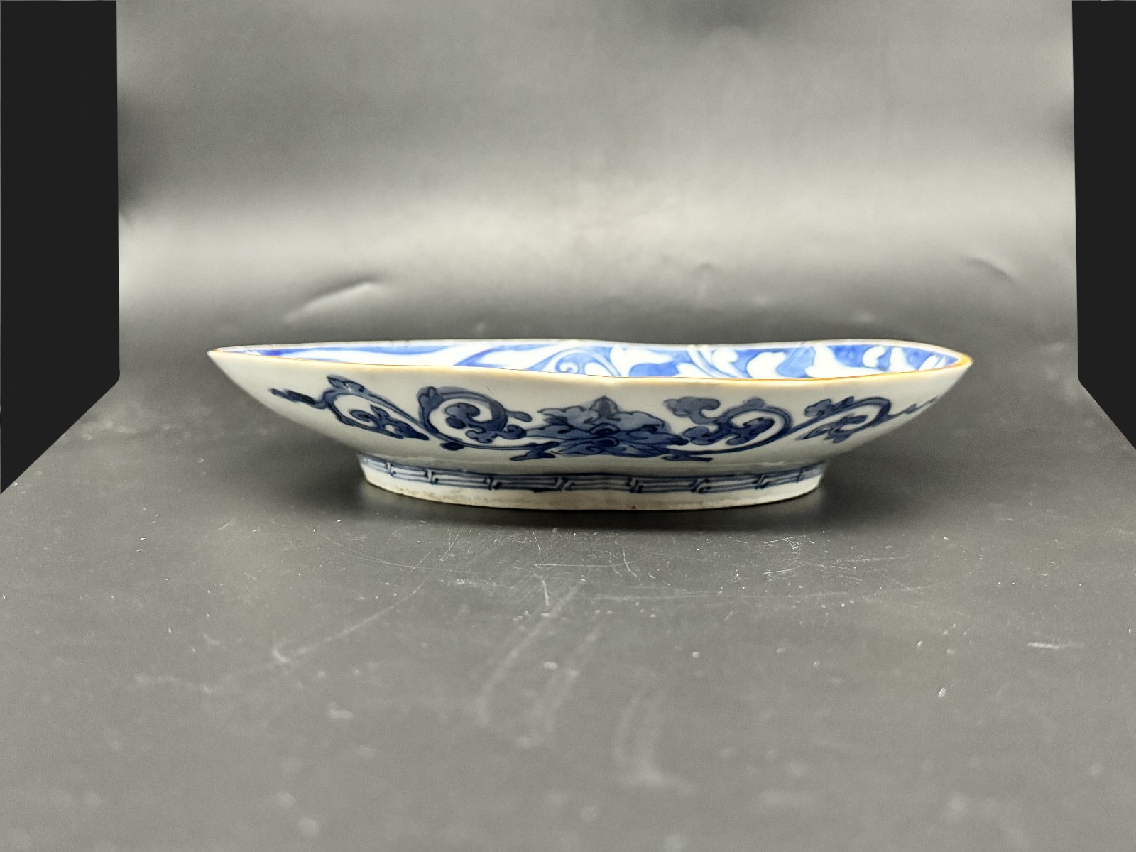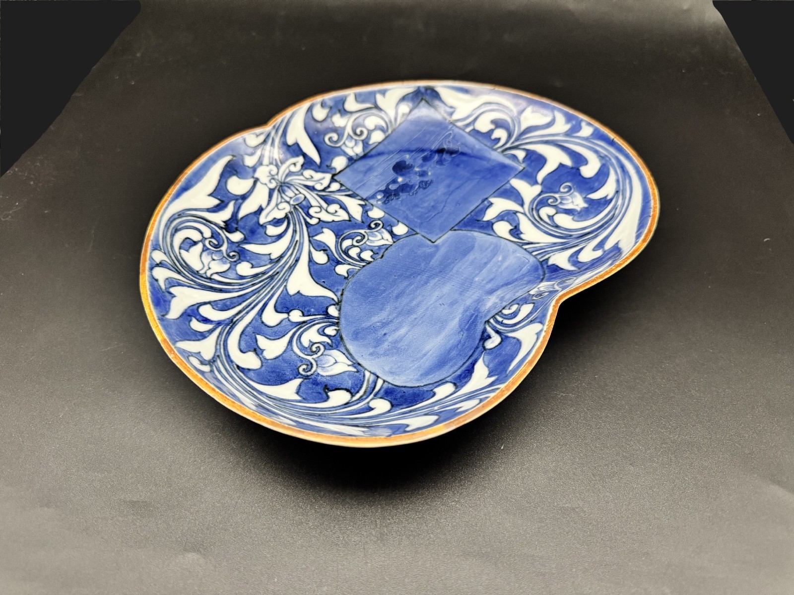 藍九谷 唐草鴛鴦文変形皿