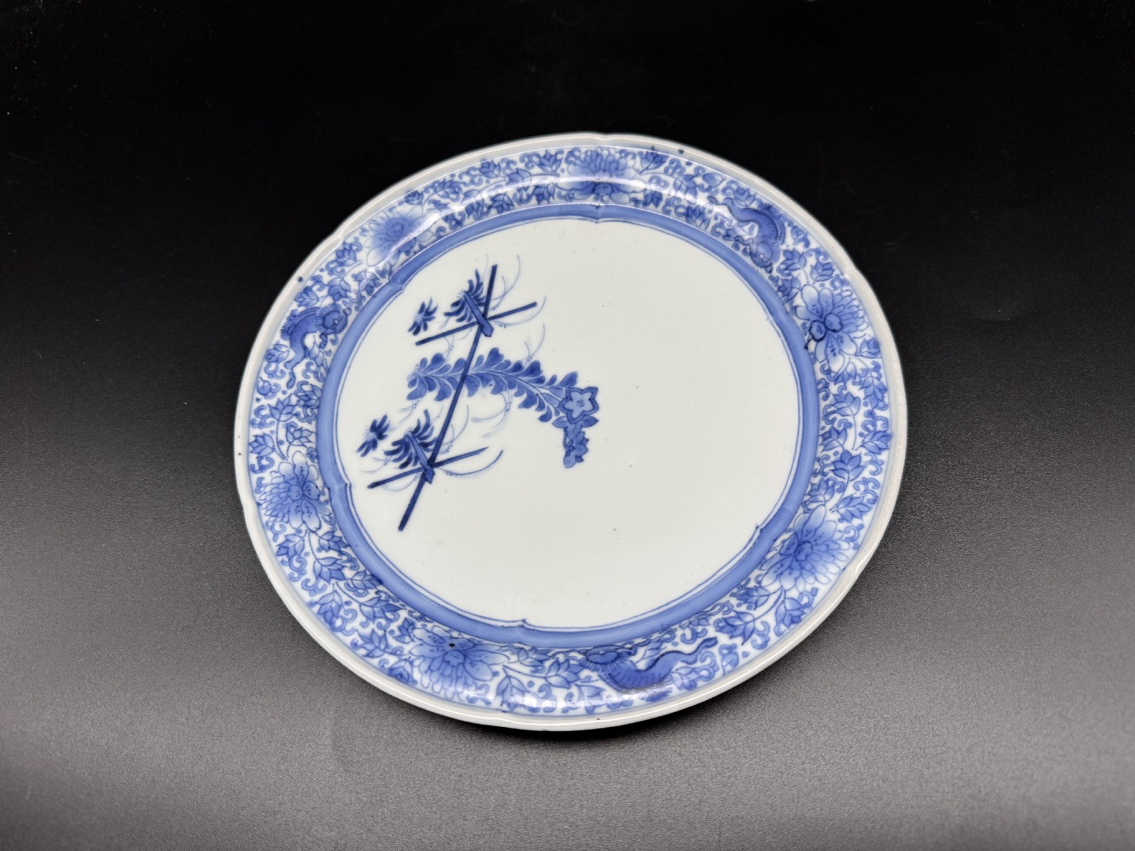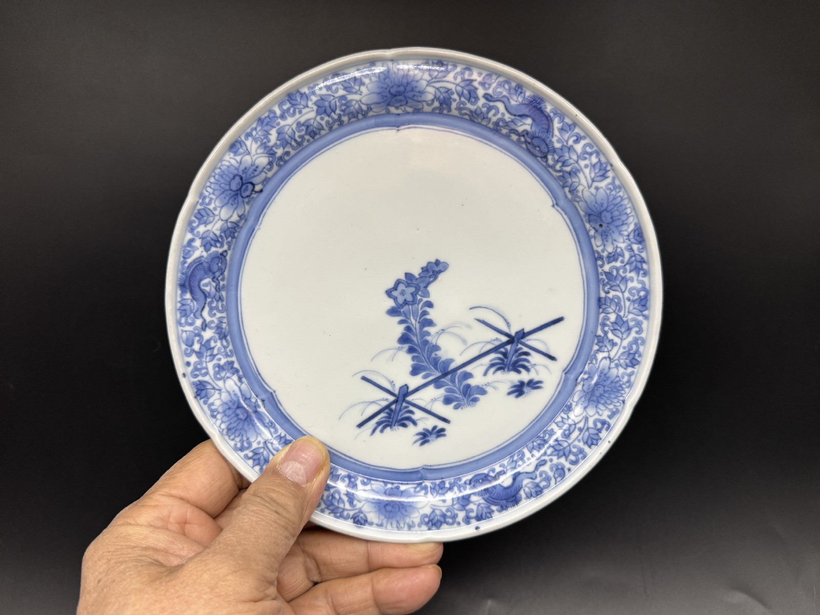藍柿右衛門 竹垣桔梗文中皿