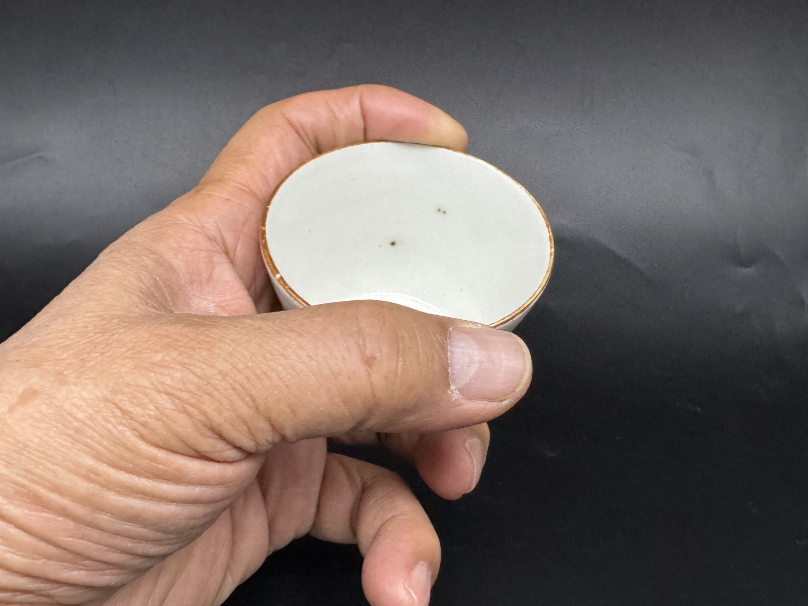 口縁の銹が所々薄くなって白いです。