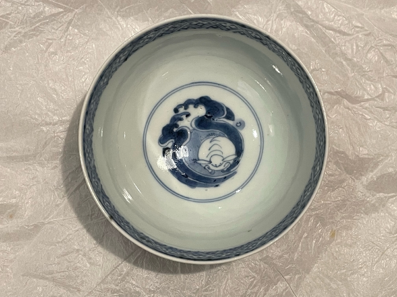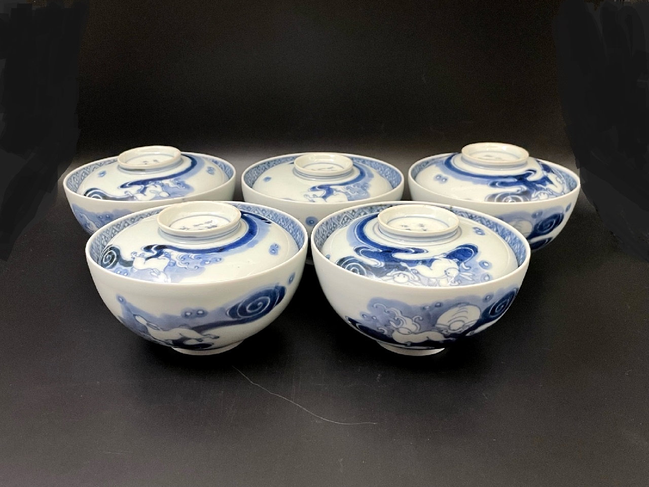 ご売約 古伊万里 波兎文蓋茶碗
