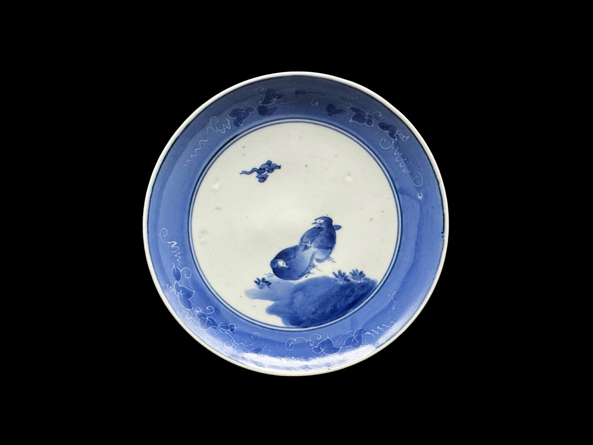 ご売約 初期伊万里 吹墨 鷺文皿(発掘品)